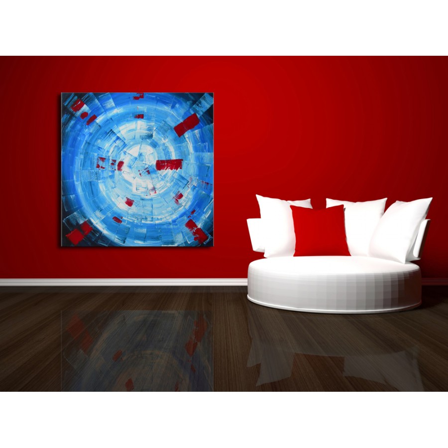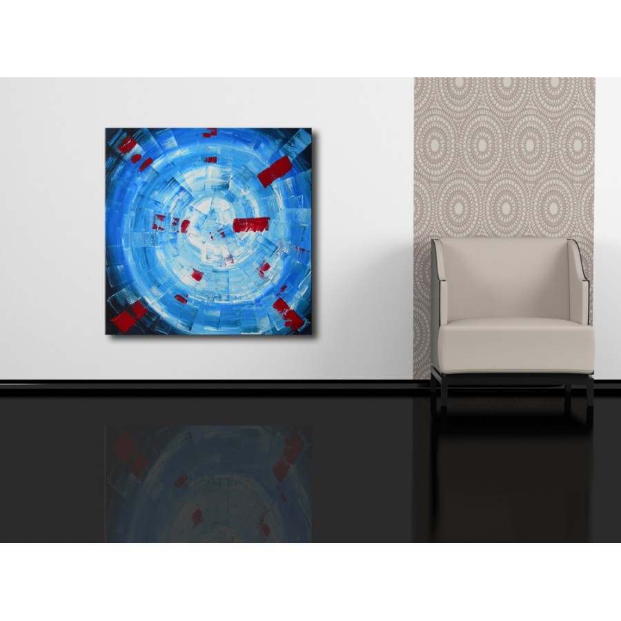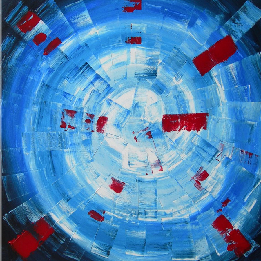 Dipinto astratto in tutte le sfumature del blu e dell'azzurro illuminate dalla luce del bianco.