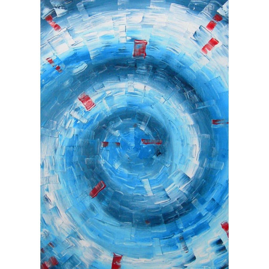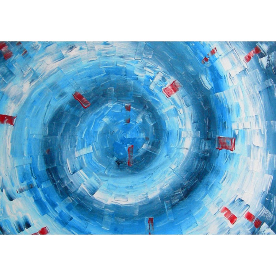 Dipinto astratto in tutte le sfumature del blu e dell'azzurro illuminate dalla luce del bianco.