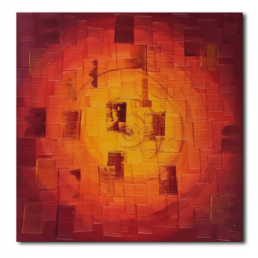 Quadro astratto con le tonalità del rosso e del giallo. Cromie forti che danno un tocco di colore alla tua stanza.